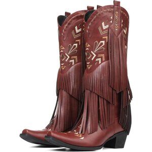 Women's Red Cowgirl Boots Knee High Fringe Boots Comfortable Comfy Foot heel