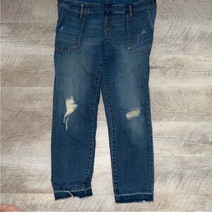 Throw these distressed denim overalls over a tee in the spring and a sweater in the fall for a laid-back chill vibe. P.S. they!! go and grow brilliantly with your bump!