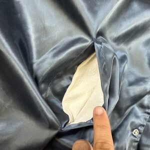 The Atlanta Braves MLB Baseball Locker Line Vintage Jacket 1991 in size Extra Large XL is a mid-length, solid blue jacket made of nylon with a polyester insulation material, providing warmth weight of 300. This casual jacket features a stand-up collar and logo accents, perfect for wearing in the winter, fall, or spring seasons. With a vintage design and a personalized touch of baseball, this overcoat-style jacket from the Made & Crafted product line is ideal for fans of the Atlanta Braves looking to stay warm and stylish in cold weather. Made in USA.