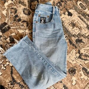 Stylish vintage Canadian made light blue denim jeans by Caretti.