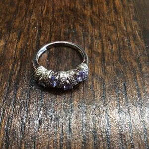 925 sterling silver ring with amethyst stones. The ring is size 7. I have put a penny in the photo so you could see approximate size. If you have any questions, please contact me. Thank you and have a great day.