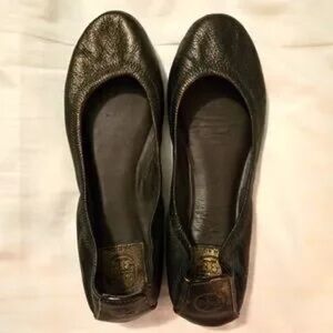 Tory Burch Gold Metallic Ballet Flats Size 8 Leather Logo Flats 8.5