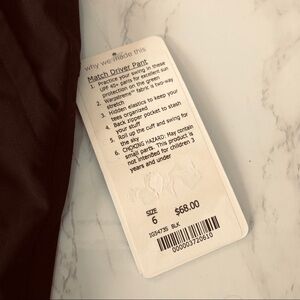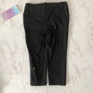 Ivivva girls black Match Driver Pant. UPF 49+ for sun protection. Two way stretch. Back zipper pocket and two front pockets. Front zipper with snap closure and additional button closure. If you flip up the bottom of the pants, there is a cute saying that shows up in the back of the pants “Swing for the sky”. Size 6 girls. Measures approximately 12.5 inches flat across the waist, 22 inches in length, 15.5 inseam. New with tags!!