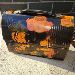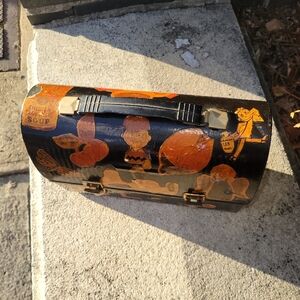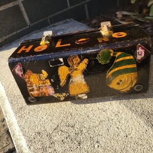 Rare Vintage 1960's Metal Black & Orange Cutout Lunchbox Collectible Home Decor