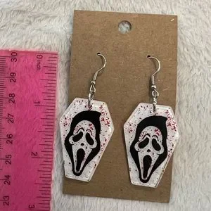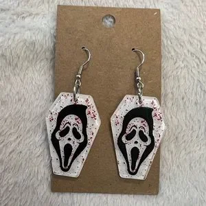 Scream ghost face horror coffin earrings