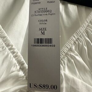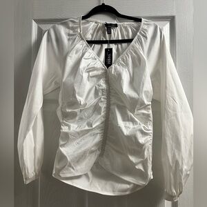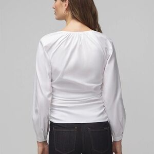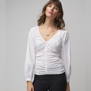 🆕 WHBM Long Sleeve Ruched V-Neck Poplin Top Size M