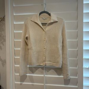 VINCE EUC Ribbed Polo Cardigan Knit Sweater Natural Ivory Cream S