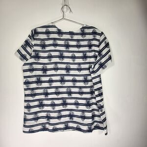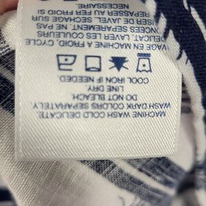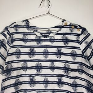 Lands' End Linen Shirt Women Large Tropical Short Sleeve Blouse Blue White Palms