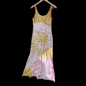 Electric & Rose Gold/Pink/White Tie Dye Side Slit Tank Style Dress Sz XS