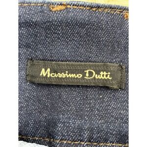 Polished utility meets modern tailoring in this Massimo Dutti high-waist cargo denim skirt. Designed with a flattering A-line silhouette, it features a button-front closure and oversized flap cargo pockets that add structure and edge to a classic dark-wash jean skirt.