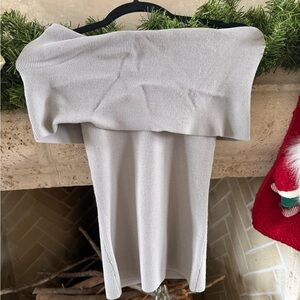 Aritzia Wilfred Soft Gray Knit Off the Shoulder Top