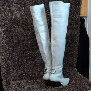Jeffrey Campbell Stylish over-the-knee boots in light grey. Perfect for a bold look. Comfortable and chic design. Very good used condition. Only wore once for a few hours.