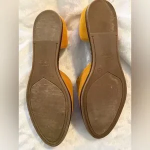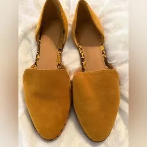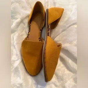 Chic mustard suede flats. Comfortable and stylish. Ideal for everyday wear.