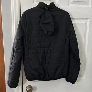 Sleek black puffer jacket. Lightweight and warm. Ideal for layering.