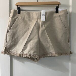 Ann Taylor Loft The Riviera Short Tan Fringe Hem Sizes 10 &12 Linen/Cotton NWT
