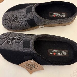 Haflinger Black and Gray Magic Wool Slippers