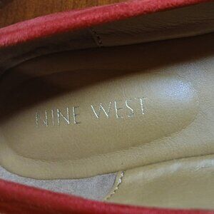 NINE WEST Red Suede Loafers with Gold Buckle Size 8M NWOT