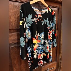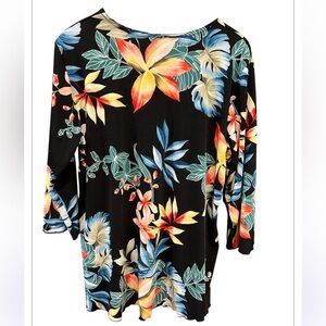 JOSTAR Women's Stretchy Tunic Top Quarter Sleeve Print Size XL Floral Print