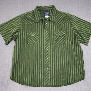Wrangler Green Striped Western Pearl Snap Lightweight Button Down Shirt. 2X