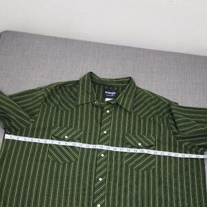 Great condition. No major flaws. Wrangler Green Striped Western Pearl Snap Lightweight Button Down Shirt. 2X