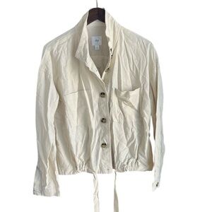 NWT DIP Cream Linen Women's Relaxed Fit Casual Utility Jacket Button Up Medium