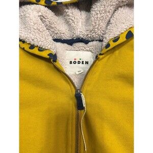 Mini Boden Kids size 7-8 Y Sherpa Lined Leopard Hoodie Cozy Warm Jacket Zip EUC