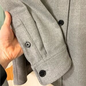 Chic light gray shirt jacket by Aritzia Babaton. Features button-up front and classic design.