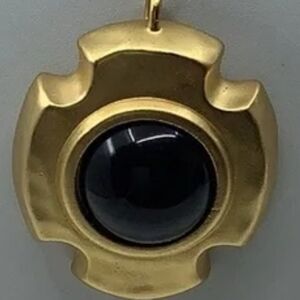 RARE Signed LINDA DAVIS 1970s Modernist Gold Tone Pendant Necklace | Black Onyx