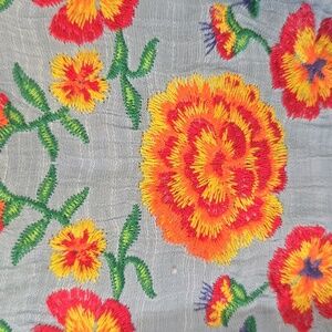 Embroidered red and orange floral design