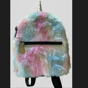 Betsey Johnson Unicorn Rainbow Fuzzy Backpack NEW