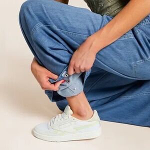 NWT We The Free Dakota Cinched Pull-On Wide-Leg Jeans Light Blue Denim Size S