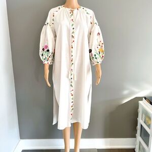 🌸 ZARA Trafaluc Gorgeous Boho Romantic Floral Embroidered Festival Relaxed Fit Midi Dress in Ivory.