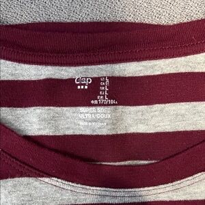 Casual long sleeve tee with maroon and gray stripes. Soft and comfortable fabric. Women’s large, NWOT.