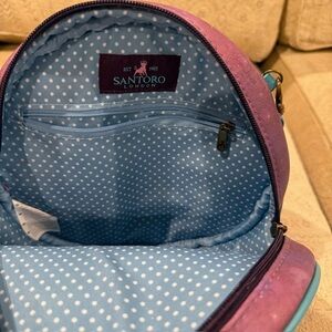 Charming blue crossbody bag featuring a whimsical illustrated design. Perfect for adding a touch of creativity to your outfit.
