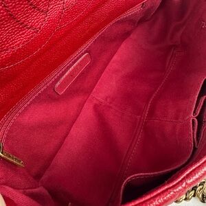 A stunning Chanel Coco Handle Small crafted in rich red caviar leather, featuring the iconic top handle silhouette paired with a classic chain shoulder strap. This structured, elegant style blends timeless Chanel heritage with everyday versatility.