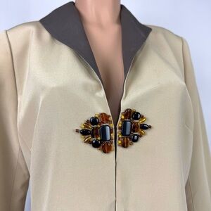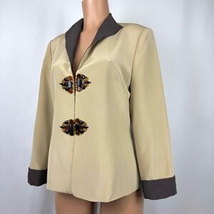 VTG Windsmoor Women’s Sz 6 100% Silk Tan/ Brown Light Weight Jacket Beaded Front