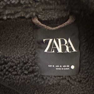 Stylish dark brown pea coat by Zara. Features brown shearling accents for a classic look. Ideal for cool weather. Size small but fits oversized!