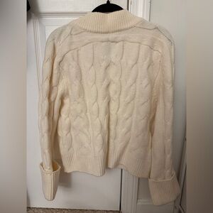Elegant cable knit design. Soft and warm texture. Ideal for layering.