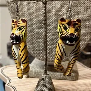 Hand painted wooden tiger earrings, gorgeous! These are stunning! Please see pictures!