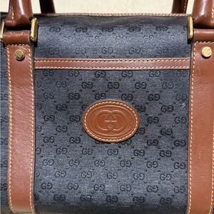 SOLD VERY RARE Vintage 70’s Gucci Navy GG Coated Canvas Boston Bag