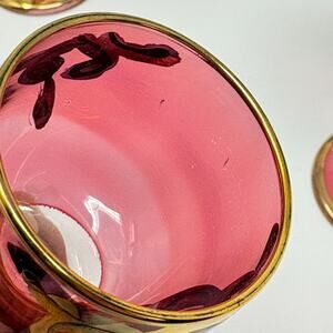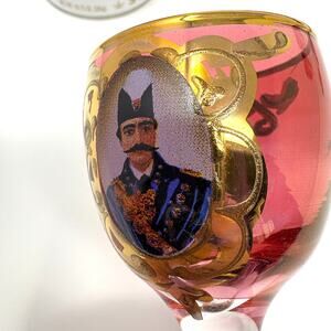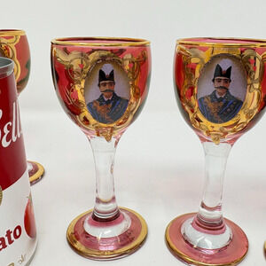 Set 6 Vtg Bohemian Cranberry Shah Qajar Persian King Cordial Glasses Gilt Red