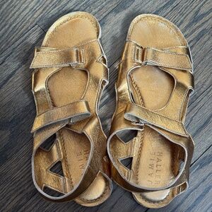 The Jamie Haller walking sandals are crafted in Italy with a calfskin upper and a leather lining and sole. These sandals feature an open toe and velcro closures. They were worn only once and have some light wear on the soles. The leather is incredibly soft and sandals are remarkably comfortable. Size 40/10 US. Regular Price: $525