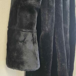 Luxury aesthetic without the animal product. This gorgeous black faux fur coat by Monterey Fashions offers a heavy, high-quality weight and a incredibly soft "mink-like" texture. Featuring a dramatic shawl collar, cuffed sleeves, and a sleek satin lining, it’s the ultimate statement piece for winter evenings or elevated daily wear.