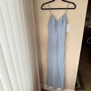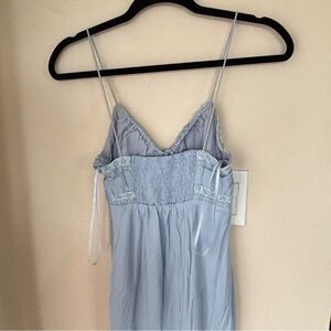 Elegant light blue slip dress. Perfect for lounging or sleep. Delicate and comfortable design. Some small fake tan staining near the edges