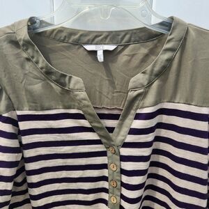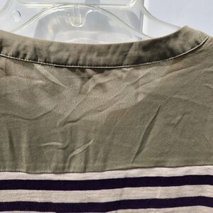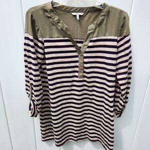 BKE Striped Henley Top Sz Sm V Neck Green Blue Cream Split Neck Tunic Roll Tab