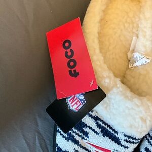 Cozy and stylish NFL slippers for women size 9/10. Features a blue and white pattern with team logo.