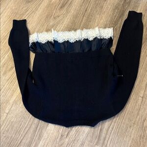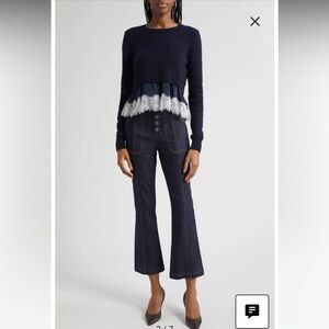NWOT Cinq a Sept NAVY ZYLA MIXED MEDIA PO SWEATER Size S