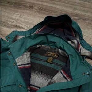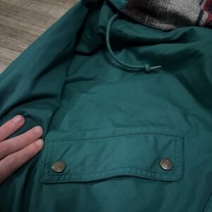 Keywords: Eddie Bauer jacket, mens parka, teal outerwear, plaid lined coat, outdoor gear, winter jacket, fall fashion, travel apparel, casual wear, windbreaker, water resistant, adjustable hood, utility pockets