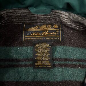 Conquer the elements in this rugged Eddie Bauer parka jacket. Its deep teal exterior offers a versatile canvas for any outdoor adventure, while the cozy plaid lining cocoons you in warmth. Adjustable drawstrings at the waist and hood allow for a personalized fit, sealing out the chill. Functional flap pockets and a sturdy button and zip closure ensure your essentials stay secure and protected. Perfect for hiking trails, brisk city strolls, or weekend getaways.