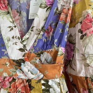 Elegant wrap dress with floral patterns. Features a mix of soft colors. Never worn before, AU 1 (US size 6).